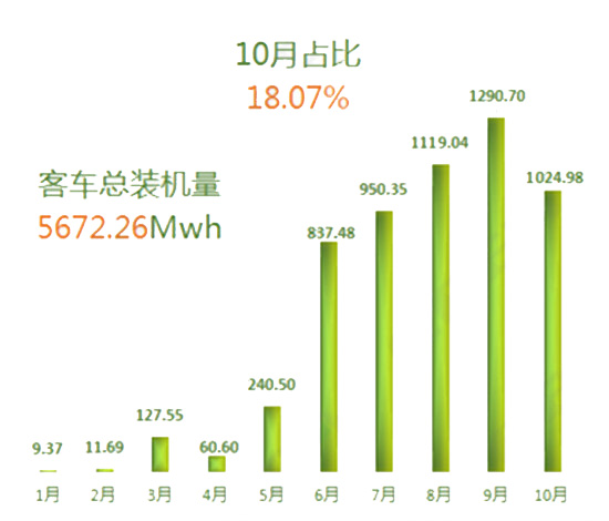 圖1:2017年1-10月新能源客車裝機量統(tǒng)計(Mwh)