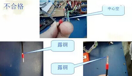 4)不合格5)導線插入端子口中,直到感覺到導線已插到底部 ,上部不能露銅