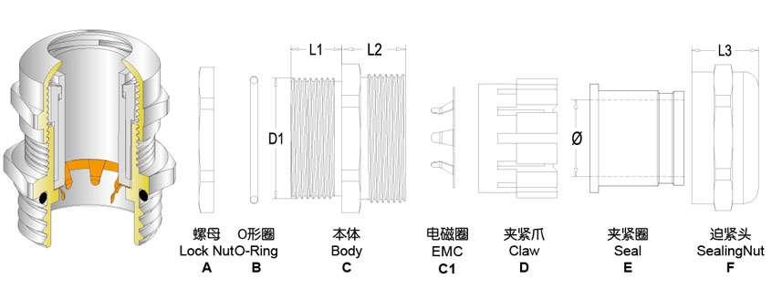 規(guī)格參數(shù)公制螺紋 M 德制螺紋 PG 美制螺紋 NPT 英制螺紋 G 適用電纜