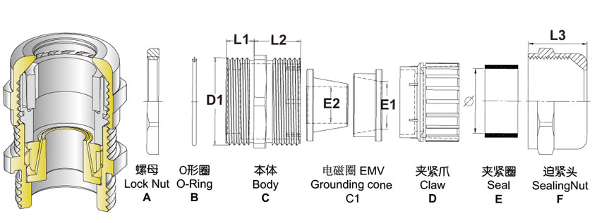 特殊加長(zhǎng)螺紋型號(hào)如:A-M20*1.5EMC-12/L=15