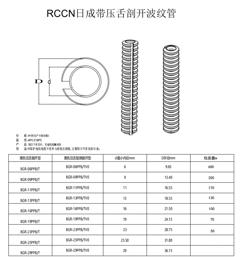 用途:在安裝好線束后,波紋管上的舌片可使開口處閉合,可保護(hù)電纜不受外力磨損及絕緣,