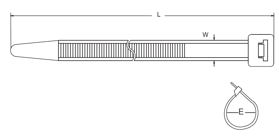 型號(hào) Item No. | 長(zhǎng)度 Length L | 寬度 Width W | 捆扎范圍 Bundle diameter E | 承受拉力 Tensile Strength | ||||