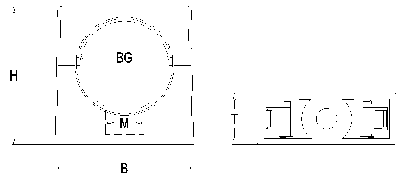 型號(hào)Item No. | 對(duì)應(yīng)日成軟管型號(hào) Suit to RCCN? conduit item no BG | 軟管或電纜外徑 Conduit or cable? outer dia ? | 寬度 Width B ? | 高度 Height H ? | 厚度 Thickness T ? | 螺絲孔 Thickness M ? | 包裝 Std.Pkg. pcs ? | |