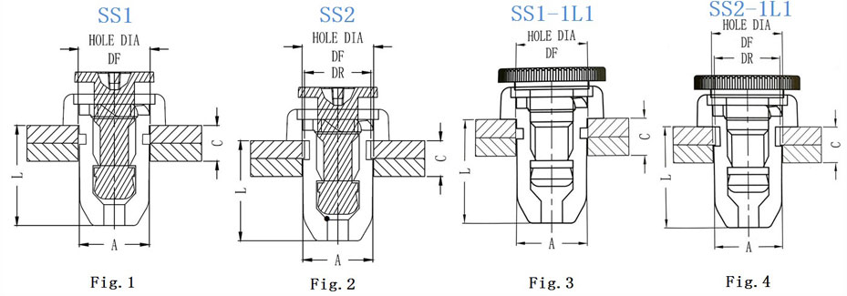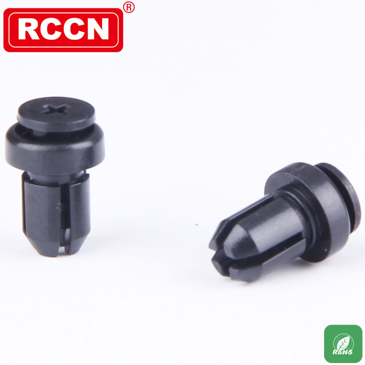 材 質(zhì):尼龍鉚釘.Body: PC(黑色),防火等級(jí)94V-2, Pin: PA+GF(黑色),防火等級(jí)94HB,不易老化,絕緣度高。用 法:先將機(jī)板及被固定板鉆孔,再將本產(chǎn)品塞入壓緊,即可使兩板相線合。用 途:PC板及機(jī)板之固定,取代螺絲,不需工具即可完成裝配。