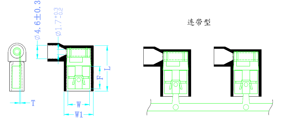 產(chǎn)品材質(zhì):接線端子采用優(yōu)質(zhì)黃銅制成,導(dǎo)電性良好,護(hù)套采用尼龍 94V-2,藍(lán)色.